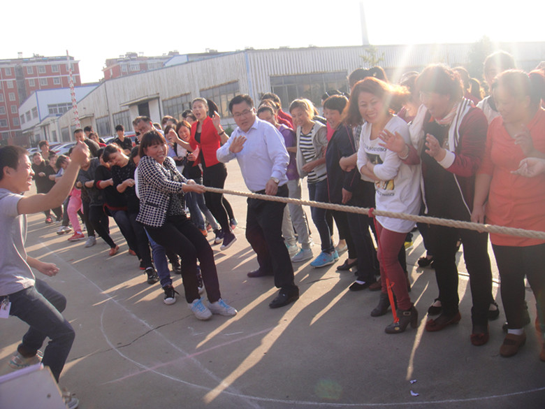 2014年10月22日,公司組織舉辦了2015趣味運動會,這是我司成立以來第二次舉辦該類活動,活動設置了拔河、集體跳繩、滾雪球、協(xié)力競走、綜合接力五個項目。按工序分組參加比賽,廣大員工積極參加,累計251人次參加活動,占全員比例的78%。根據(jù)比賽規(guī)則決出冠、亞、季軍共105人次,占全員比例的33%。趣味運動會圖片如下: